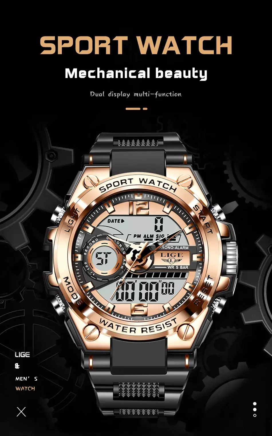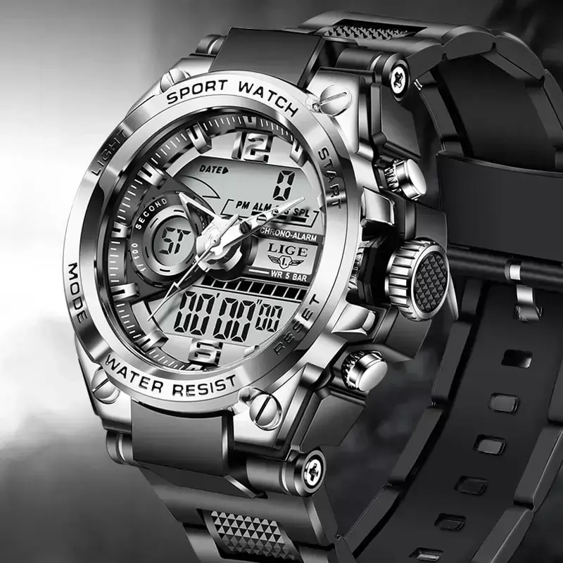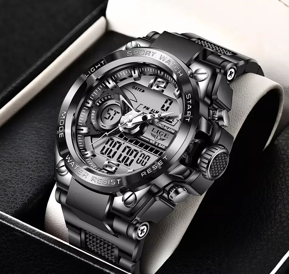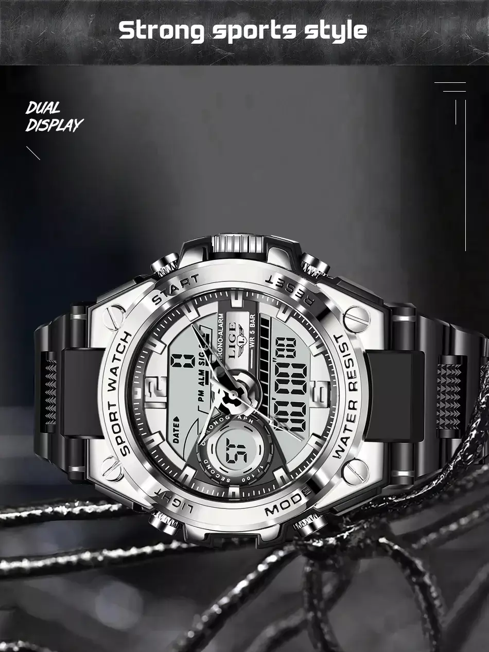 • Movimento Digital:O relógio usa tecnologia digital para exibir a hora, fornecendo leituras precisas e confiáveis.