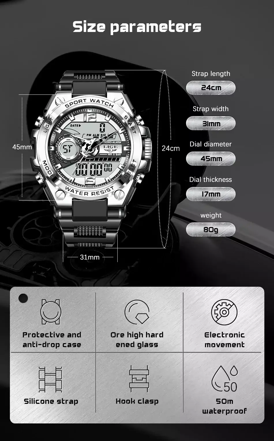 • 50m impermeável:Pode suportar respingos de água e chuva, tornando-o adequado para atividades ao ar livre.